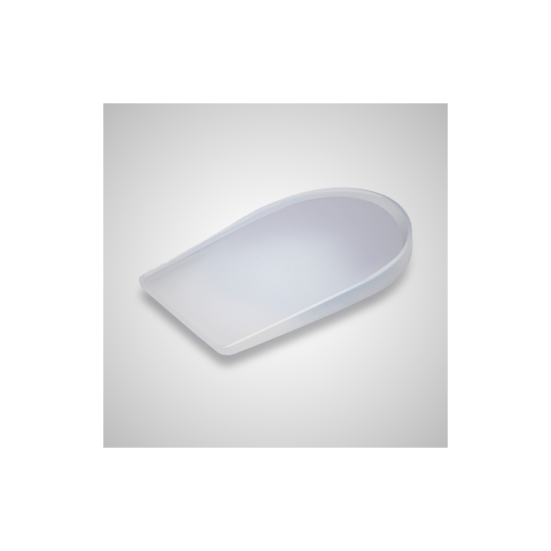 Controtacco a cuneo disegnato con un unico tipo di silicone. Attutisce l'impatto del tallone contro il suolo e distribuisce la pressione sul tallone in modo uniforme. Realizzato in silicone medico viscoelastico, con adattamento bilaterale. Si adattano alla temperatura corporea e sono lavabili.