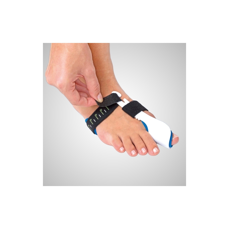 Incorpora un cuscinetto ammortizzante per il 1° dito, una fascia metatarsale sul 5° metatarso regolata per controllare la pressione correttiva e una fascia metatarsale anatomica e retrocapitale sul 1° metatarso. Inoltre, incorpora un comfort pad sul 5° metatarso. Realizzata in termoplastica e con morbido velour. Chiusura in microvelcro.