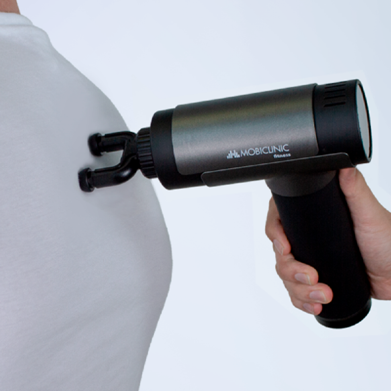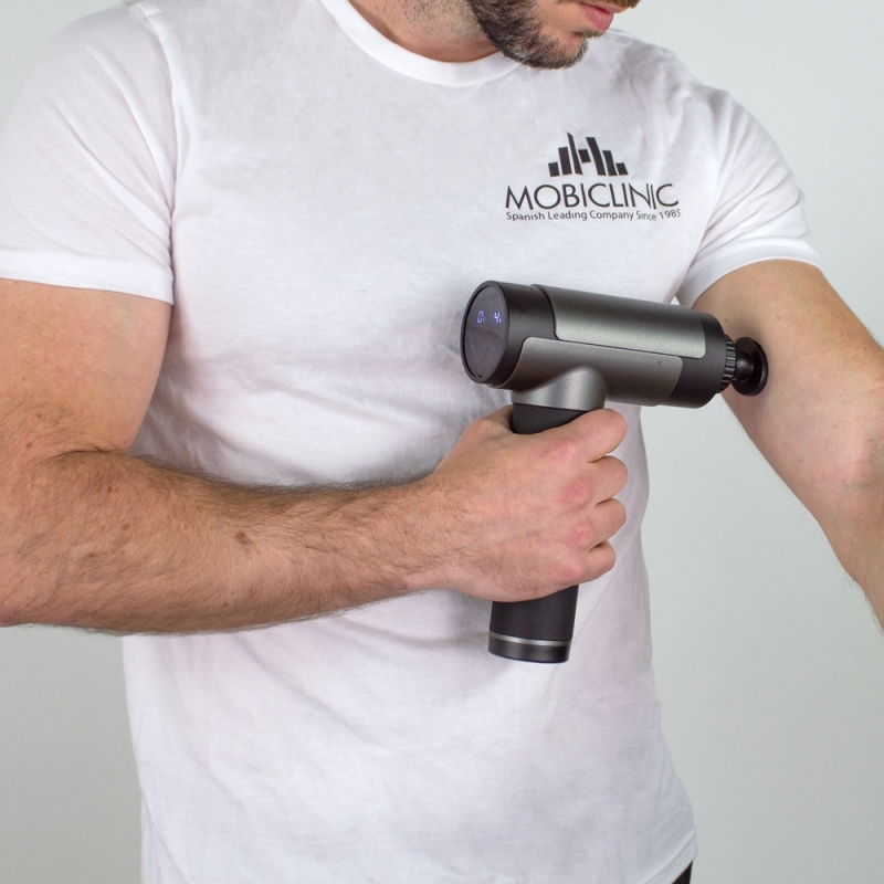 Con la pistola per massaggi muscolari, è possibile eseguire massaggi a percussione. Questo tipo di massaggio consiste in movimenti costanti che forniscono numerosi benefici come la riduzione del dolore, l'aumento del flusso sanguigno o la riduzione degli spasmi muscolari.