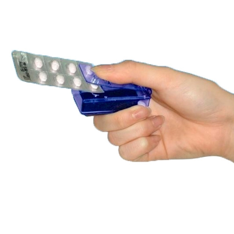 Estrattore di pillole progettato per estrarre facilmente e comodamente i farmaci dai blister. È un prodotto di grande aiuto per le persone con articolazioni superiori fragili e che hanno difficoltà a prendere le loro dosi senza l'aiuto di altri. Il suo uso è semplice, poiché basta inserire il blister della compressa nel foro indicato dell'estrattore di farmaci e premere su di esso. Automaticamente, la pellicola che trattiene la compressa nel suo scomparto si rompe, rilasciando la capsula e facendola cadere nel contenitore. Poi fai scivolare via il tappo e aprilo per recuperare la pillola. L'estrattore di pillole è facile da pulire, richiede solo un panno con acqua e sapone. Evitare di lavarlo in lavastoviglie e non usare la luce UV per disinfettarlo.
