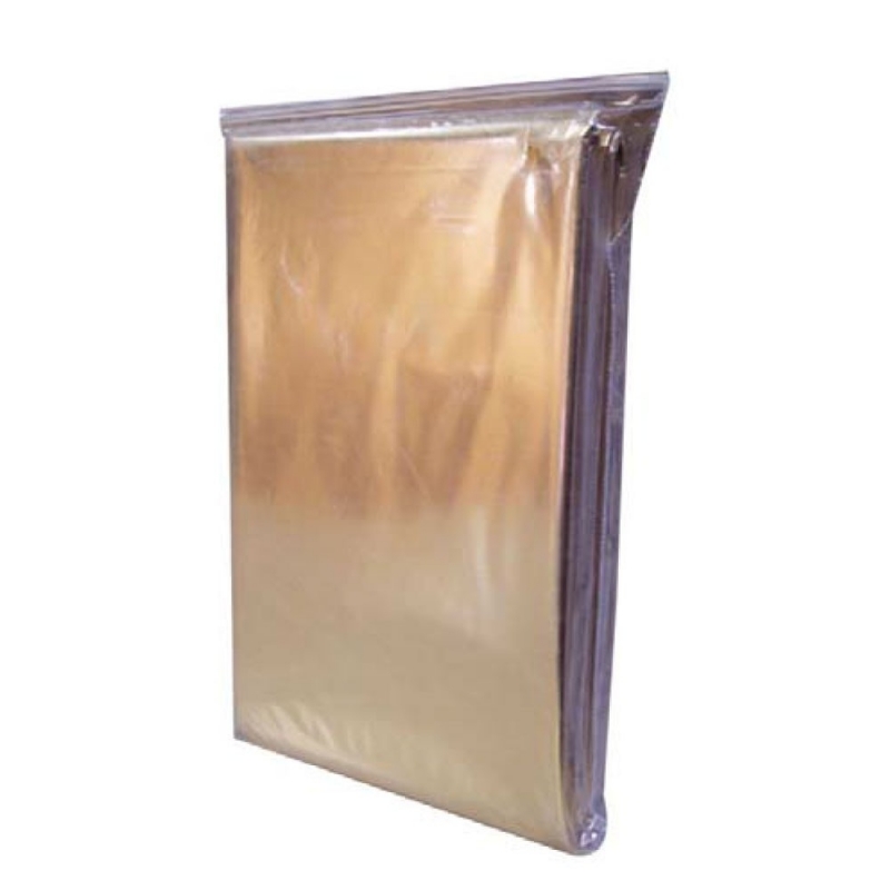 È una coperta termica termo isolante alluminizzata oro/argento, pensata per proteggere il paziente o la persona a rischio di freddo, calore e umidità. Questo presidio medico di isolamento in oro e argento isola perfettamente il paziente da qualsiasi rischio generato dalle temperature rigide. Suggerimento di suo: Il personale medico di soccorso di solito utilizza questo tipo di coperte di salvataggio per proteggere la temperatura corporea di: malati, escursionisti, viaggiatori, infortunati e in generale chiunque sia a rischio di ipotermia o collasso da insolazione.