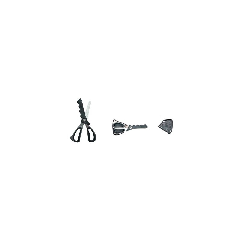 Forbici di emergenza Robin in acciaio inossidabile. La lunghezza del bordo è di 25 cm. Con staffa a parete. Può essere utilizzato per rompere il vetro in situazioni di emergenza.