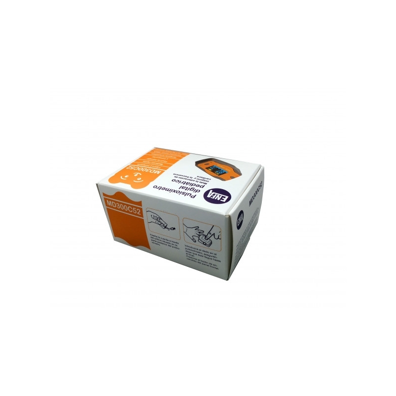 Questo dispositivo medico destinato alla misurazione non invasiva della saturazione di ossigeno nel sangue (SpO2) e della frequenza cardiaca, è adatto all'uso in ambiente domiciliare o ospedaliero in pazienti pediatrici. Non è inteso per uso singolo o monitoraggio continuo o durante il trasporto attraverso il dito.