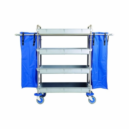Carrello con 4 vassoi in plastica di polipropilene cromato 147x56x128