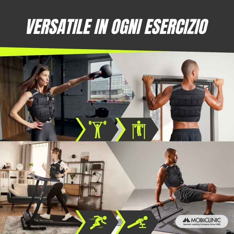 MOLTI ALLENAMENTI: il giubbotto con pesi è lo strumento perfetto per portare i tuoi allenamenti al livello successivo. La sua capacità di aumentare l'intensità significa che puoi incorporarlo in un'ampia varietà di esercizi , come allenamento di forza, velocità, salto e resistenza. Sfida i tuoi limiti e raggiungi i tuoi obiettivi!
