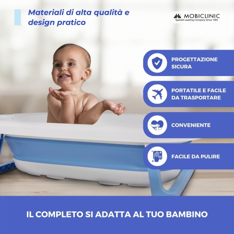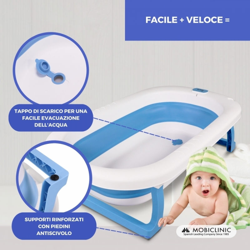 È anche un modello con supporto rinforzato sulle gambe antiscivolo, garantendo stabilità e sicurezza del bambino durante l'uso. Fare il bagnetto al tuo bambino non è mai stato così facile e sicuro!