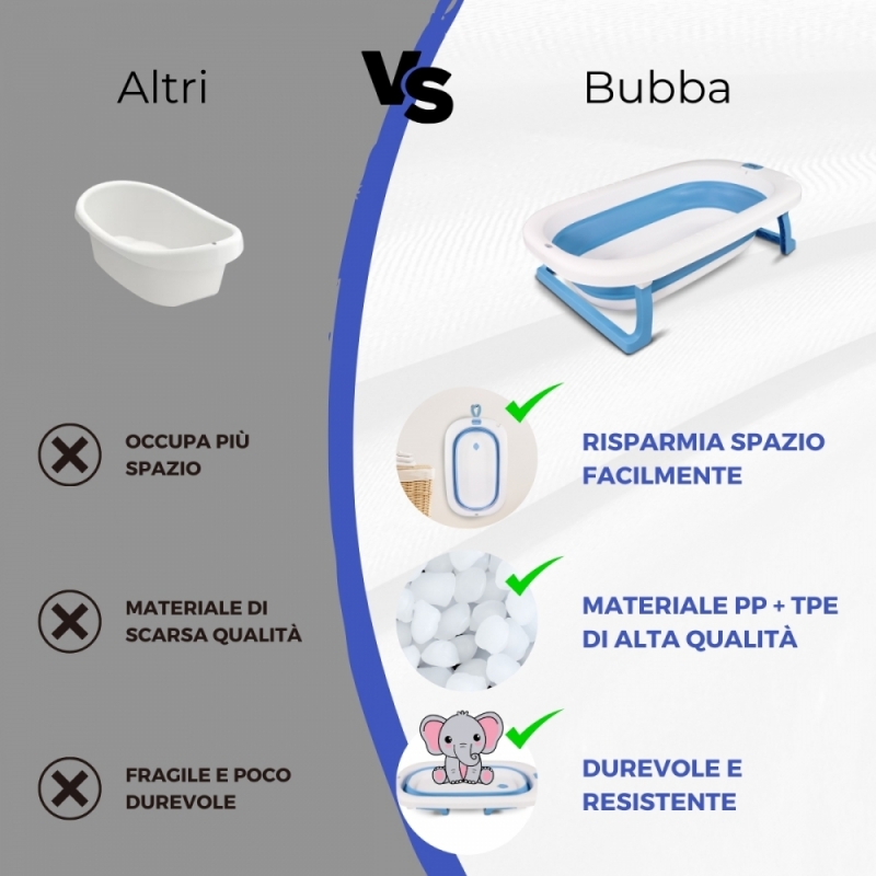 MANTENERE L'IGIENE DEL TUO BAMBINO: La vasca da bagno per bambini Bubba è ideale per fare il bagno al tuo bambino durante i primi mesi grazie alle sue dimensioni ridotte e al design semplice. Il momento del bagnetto è un importante stimolo motorio fisico e psicologico. Può essere un passo preliminare ideale per andare a dormire, abbassare la guardia e riposarsi. Incoraggia anche il gioco in acqua, con giocattoli adatti a questo.