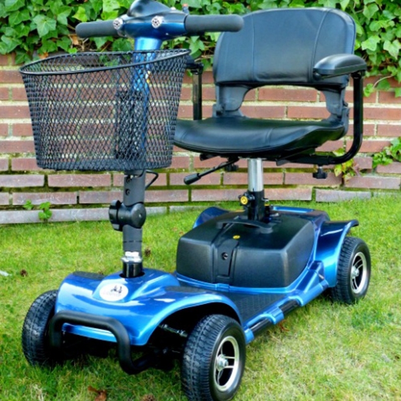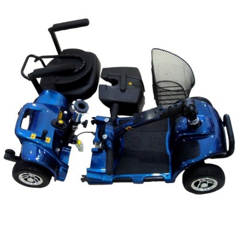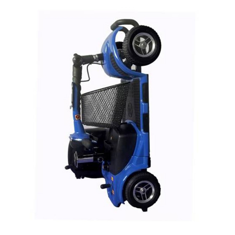 Es un scooter eléctrico para minusválidos con un diseño moderno y compacto en color azul metalizado. Gracias a sus reposabrazos regulables en anchura, podrás ajustarlos para estar siempre cómodo y relajado durante tus trayectos.