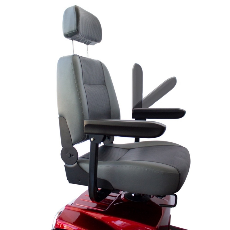 - Il poggiatesta e i braccioli abbattibili e regolabili in larghezza e inclinazione garantiscono all'utente una guida rilassante e confortevole.