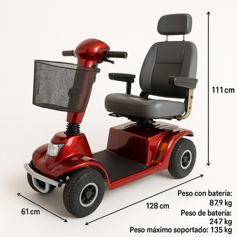 Scooter elettrico per disabili | 4 ruote | Premium | Smontabile| | Auton. 45 km | 12V | Bordeaux | Libra| Mobiclinic