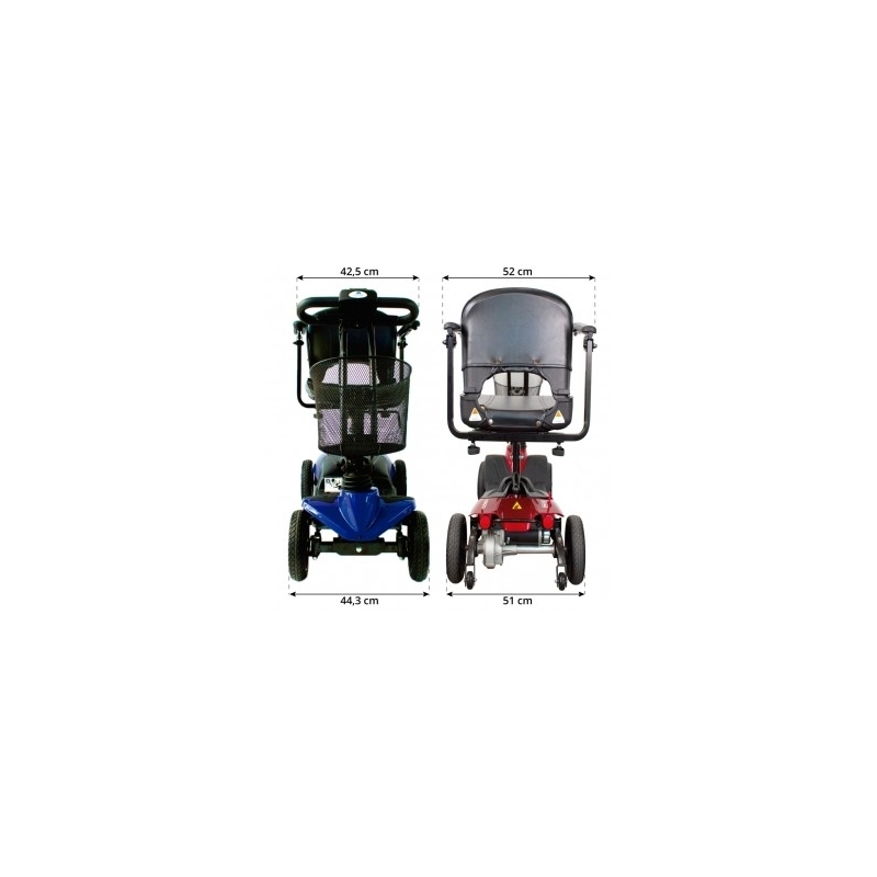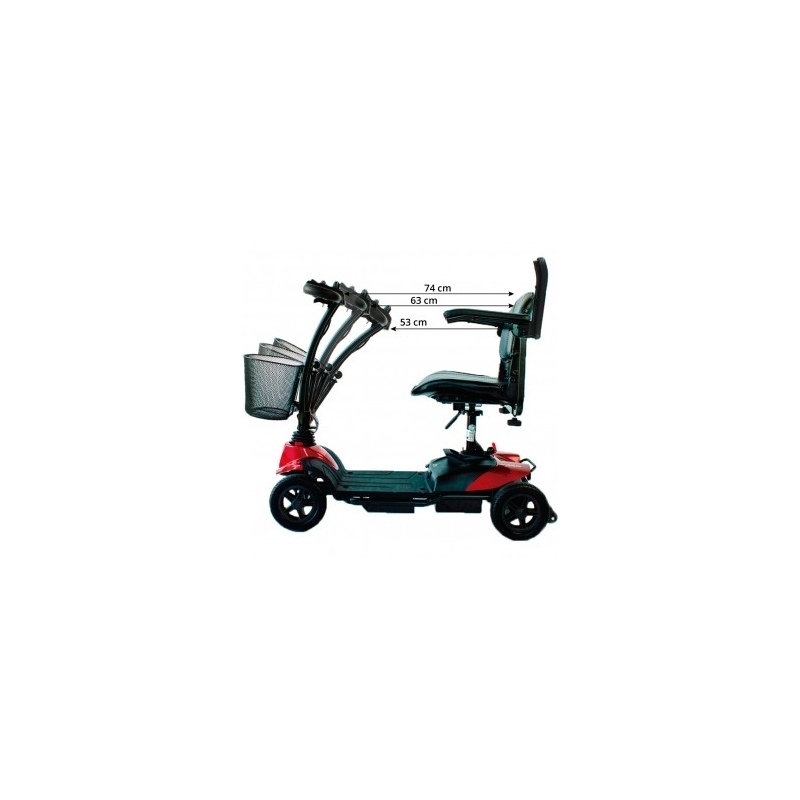 Questo scooter anziani a quattro ruote è stato progettato per essere utilizzato sia all'interno che all'esterno. Si tratta di una moto per anziani molto sicura, in quanto include ruote posteriori antiribaltamento, in modo tale da non rovesciarsi in curva o per l'inclinazione del terreno.