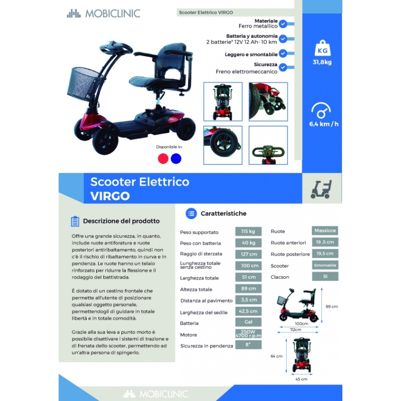 Lo scooter per disabili modello Virgo aiuta a ridurre le difficoltà di persone a mobilità ridotta o che non possono camminare per tanto tempo e/o per lunghe distanze.