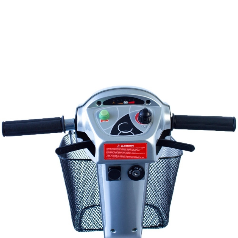 Si tratta di uno scooter elettrico per anziani e disabili molto sicuro, include ruote anteriori e ruote posteriori antiribaltamento, in modo che non si ribalti in curva o su terreni inclinati. Ha un telaio rinforzato per ridurre la flessione e lo spostamento delle ruote.