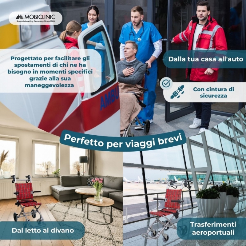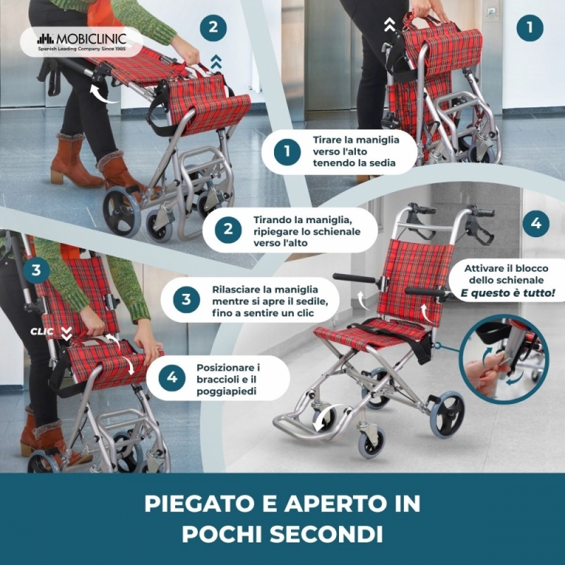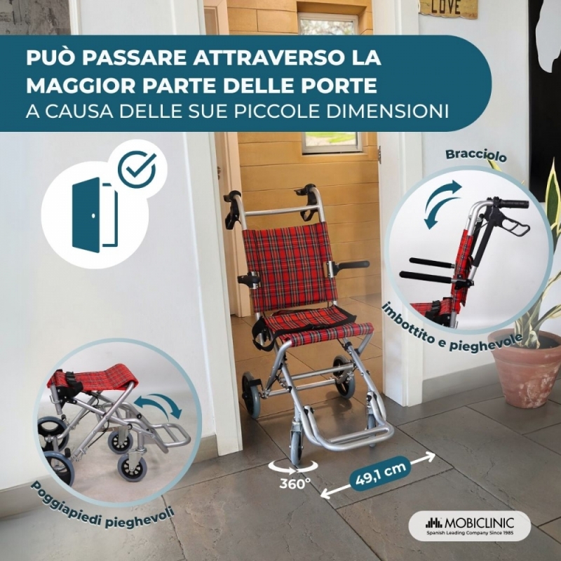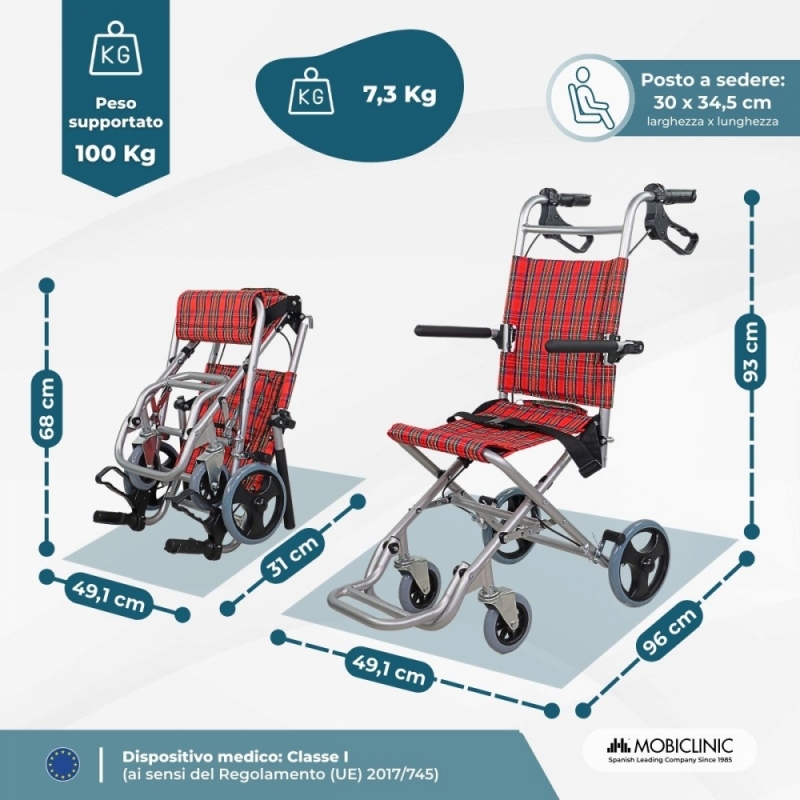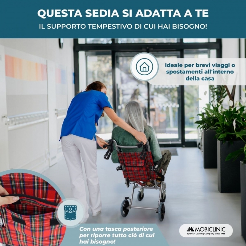 Sedia a rotelle da transito | Pieghevole | Alluminio | Freni sull'impugnatura | Quadri scozzesi | Neptuno | Mobiclinic