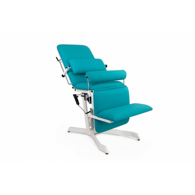 Poltrona per rettoscopia, urologia e proctologia elettrica, altezza fissa con regolazione Trendelenburg/antitreno tramite comando manuale.