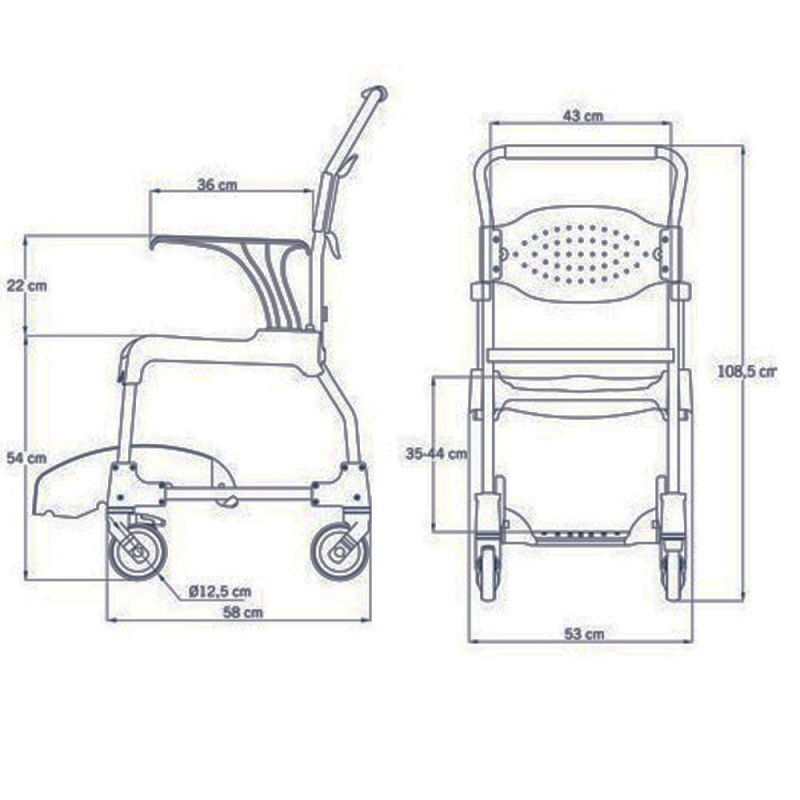 Il sedile della sedia wc anziani è predisposto per l'uso in doccia, lavabo e toilette, così come per il trasporto dei pazienti. La sua grande capacità di peso consente di trasportare pazienti con un peso massimo di 150 kg.