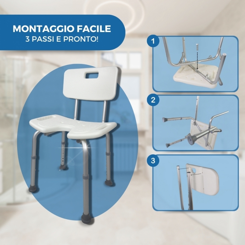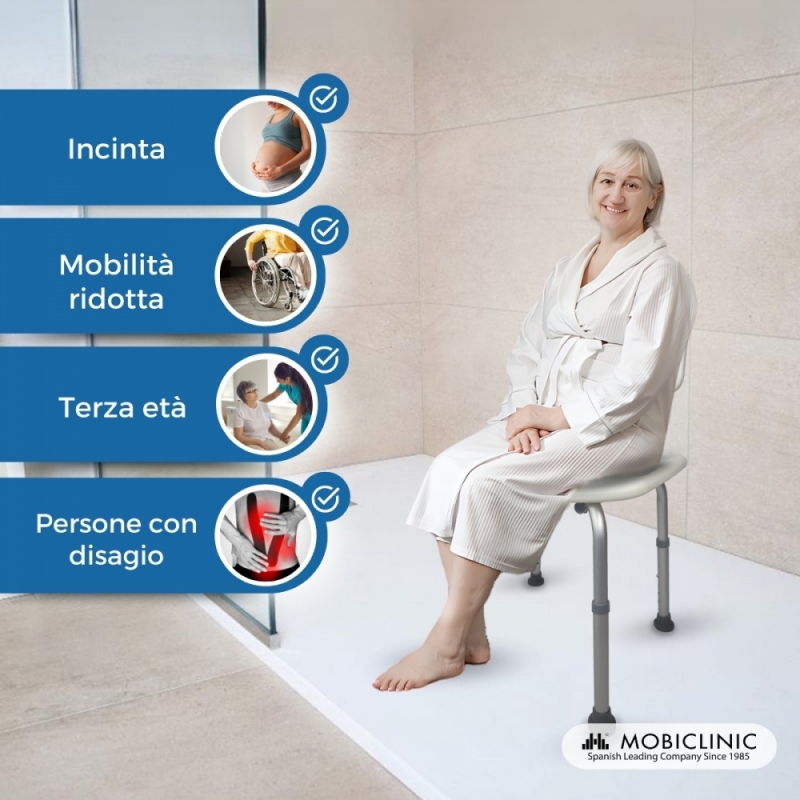 Queste caratteristiche innegabili si combinano con un ottimo prezzo. La sua funzionalità e la sicurezza di questa sedia da bagno è alla portata di tutti. Il manuale di istruzioni incluso è in spagnolo, inglese, francese, italiano e tedesco. Gli strumenti per un facile montaggio sono inclusi.