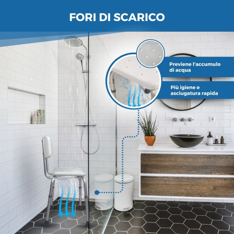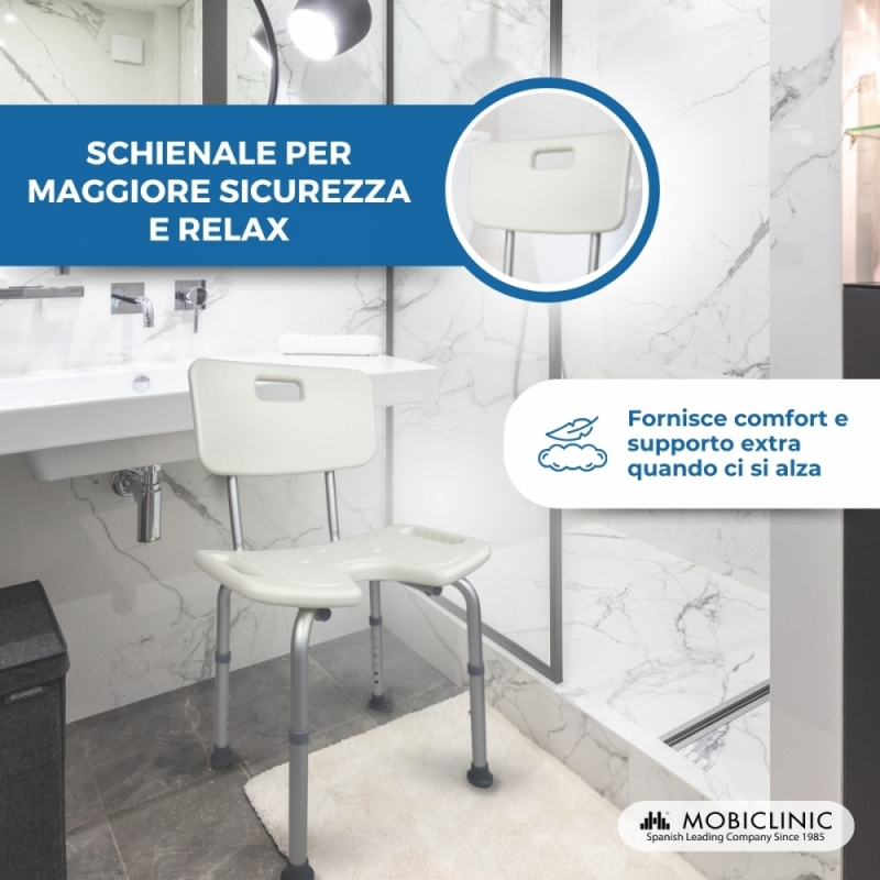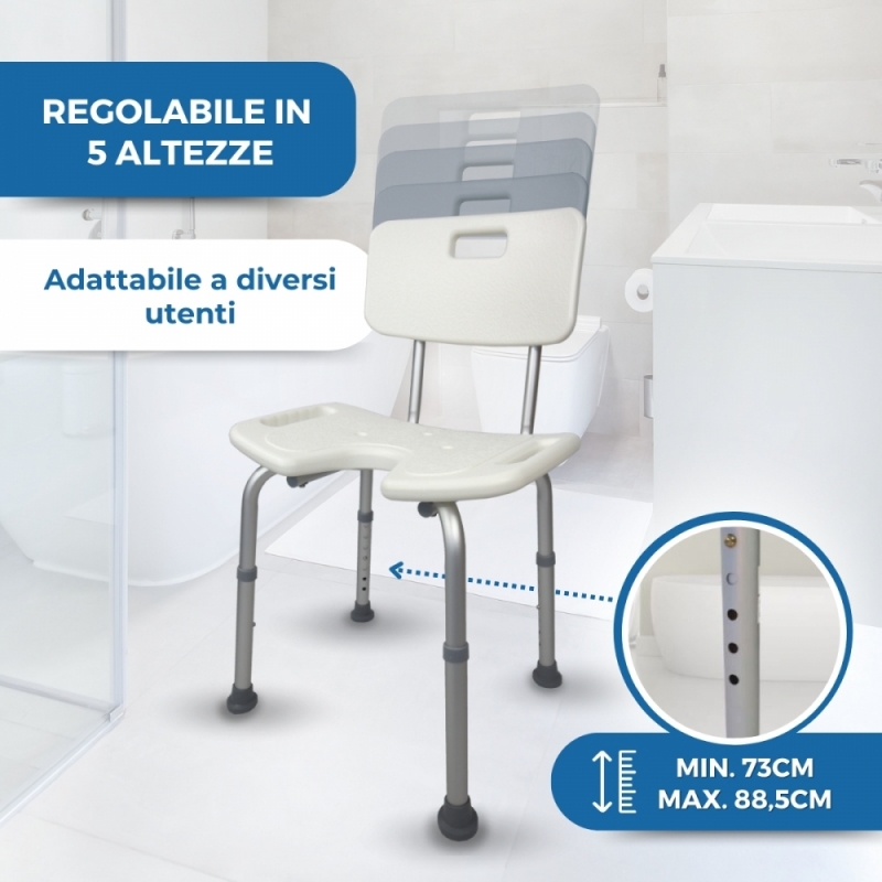 - Il sedile ha una finitura a forma di U che facilita la pulizia della zona genitale.