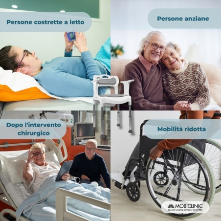 ORINATOIO INCLUSO: Questa sedia è dotata di un orinatoio rimovibile che supporta fino a 6 kg e ha una capacità fino a 3500 ml, offrendo grande autonomia all'utente. La rimozione dell'orinatoio è molto semplice, facilitando la pulizia e mantenendo la sedia sempre igienica per l'uso.