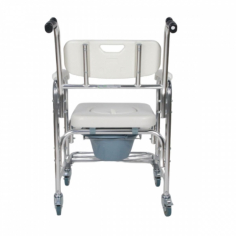 È versatile e può essere utilizzata come sedia comoda, sedia da doccia, rialzo per WC e sedia da trasferimento, adattandosi alle esigenze di tutti gli utenti. È dotata di freni su tutte e quattro le ruote per una maggiore sicurezza e per evitare movimenti involontari.