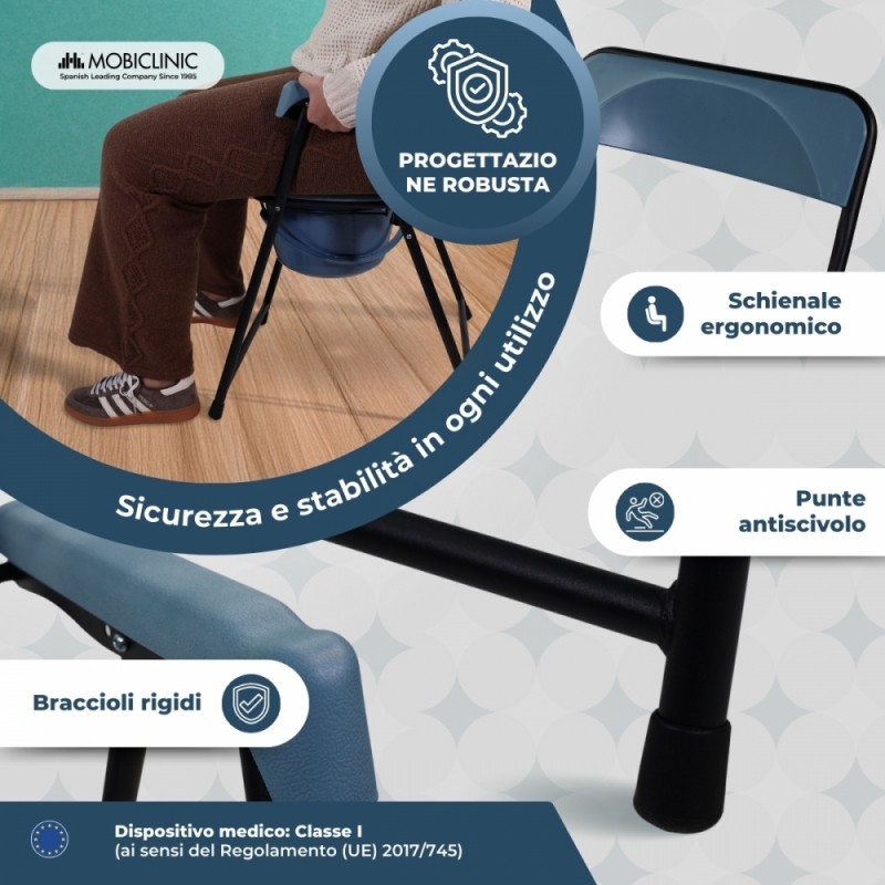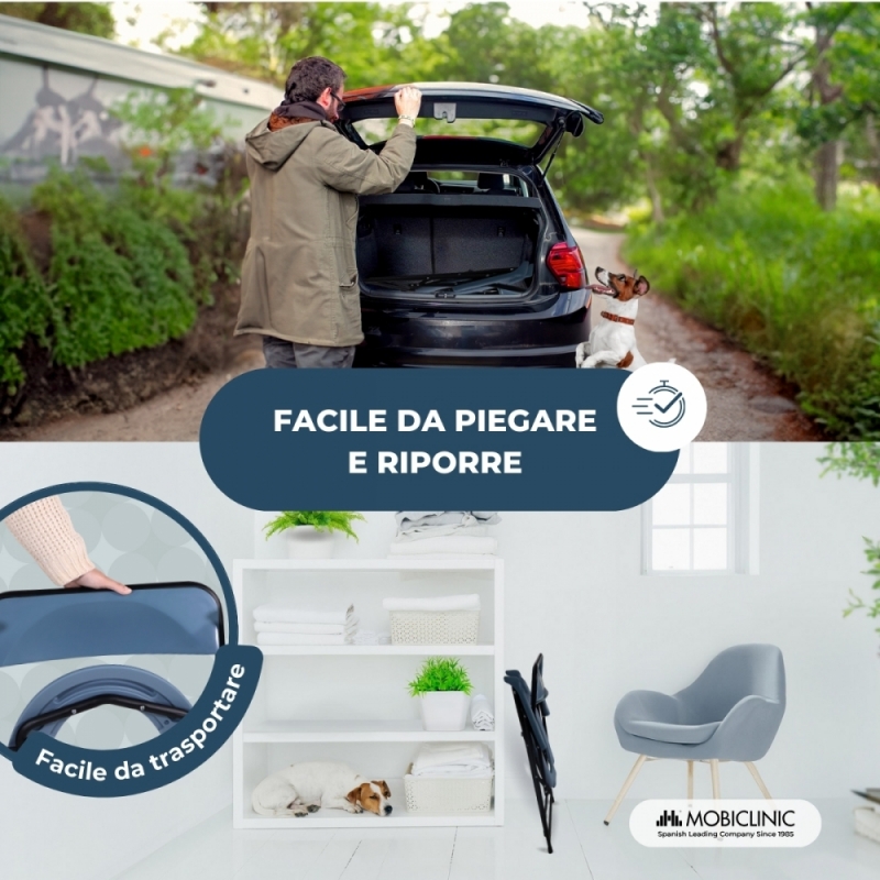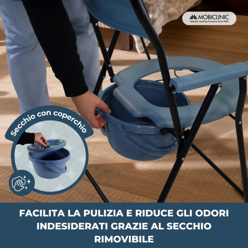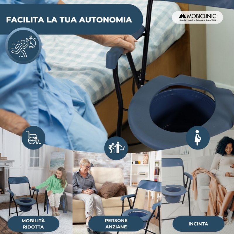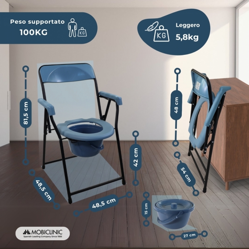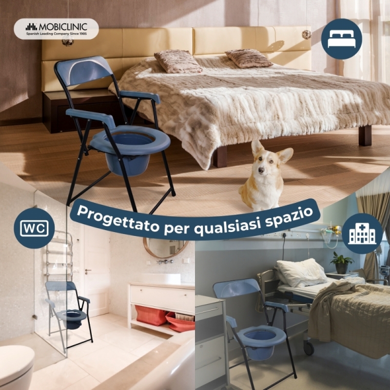 - La sedia con wc è facile da riporre e ideale per piccoli spazi, e dispone di una seduta simile a quella di un water.