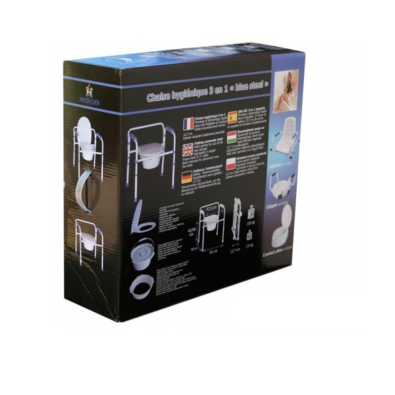 Con questa sedia avrai 3 prodotti in 1: puoi utilizzarla come alza wc, sedia wc da camera e come ausilio per il bagno.