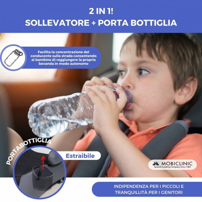 COMPRENDE PORTABOTTIGLIA: Questo seggiolino auto per bambini è dotato di un proprio portabottiglie rimovibile, ideale affinché il bambino possa accedere liberamente alla propria bottiglia senza interrompere la circolazione del conducente e fornendo indipendenza al conducente.