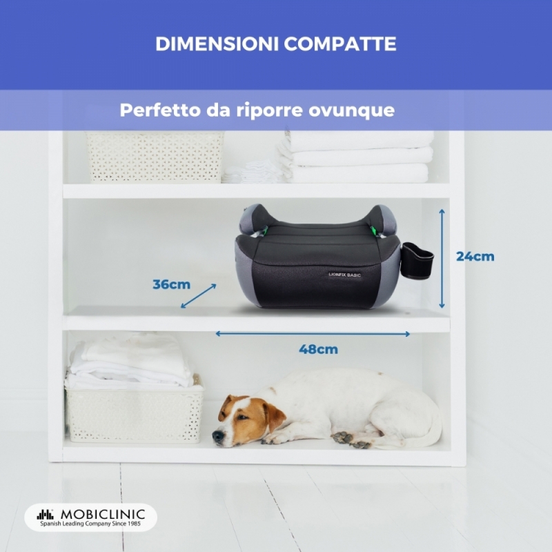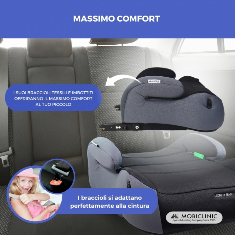 Il suo utilizzo è estensibile nei bambini con altezza compresa tra 125 e 150 cm e peso massimo fino a 22-36 kg. Questo rialzo per auto può quindi diventare una scelta duratura per i tuoi bambini grazie alla sua adattabilità e al suo formato. Lionfix Basic ti manterrà comodo e protetto durante tutti i tuoi viaggi con la famiglia nel corso degli anni.