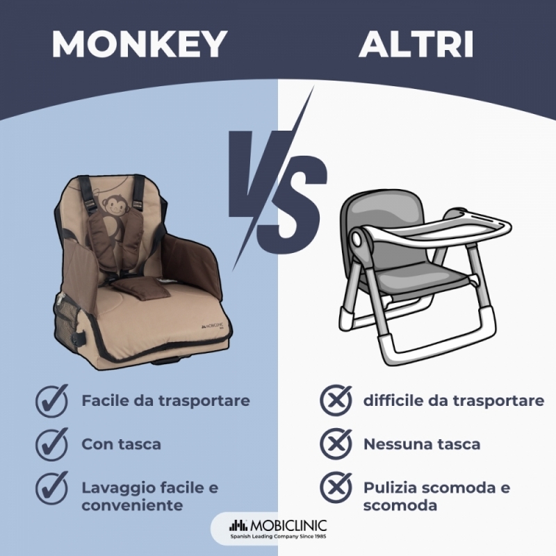 Seggiolone da viaggio con contenitore| Per neonati | Pieghevole | Tasca e maniglia | Fino 15 kg | Beige | Monkey | Mobiclinic