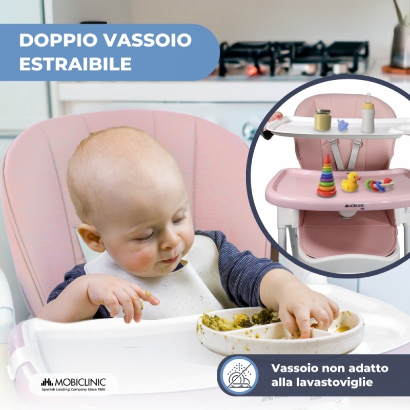MULTIFUNZIONALITA': La possibilità di estrarre il vassoio ne facilita l'utilizzo prolungato come seggiolino quando il bambino è più grande, purché rispetti il peso massimo supportato. Questo permette al bambino di giocare, dipingere, interagire con l'ambiente o addirittura imparare ad usare le posate.