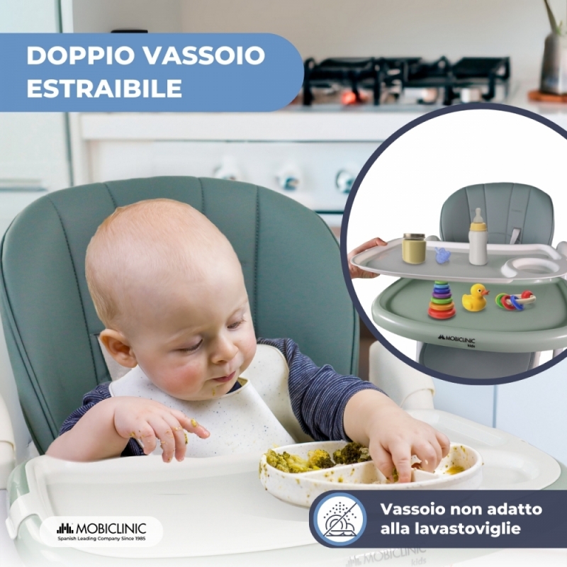 MULTIFUNZIONALITA': La possibilità di estrarre il vassoio ne facilita l'utilizzo prolungato come seggiolino quando il bambino è più grande, purché rispetti il peso massimo supportato. Questo permette al bambino di giocare, dipingere, interagire con l'ambiente o addirittura imparare ad usare le posate.