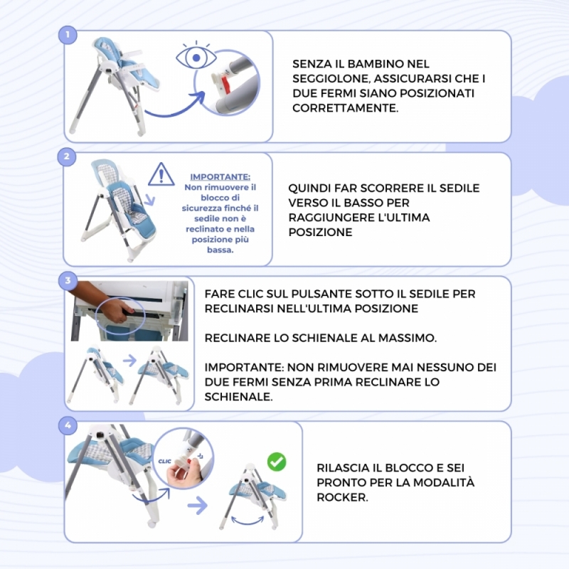 - Può essere utilizzato come seggiolone o come dondolo