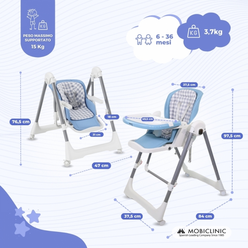 - Essendo 2 prodotti in 1: grazie alla sua funzione seggiolone e dondolo, non è necessario acquistare entrambi i prodotti separatamente e i bambini potranno usufruire del seggiolone per mangiare e della dondolo per riposare.