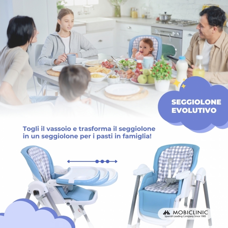 PRATICO : Grazie al vassoio estraibile , NALA permette al tuo piccolo di condividere la tavola con te, favorendo l'unità familiare e insegnandogli l'importanza delle abitudini alimentari fin dalla tenera età. Questo passaggio è un passo preliminare essenziale affinché il piccolo impari a mangiare da solo, sviluppando la sua indipendenza e le sue capacità motorie.