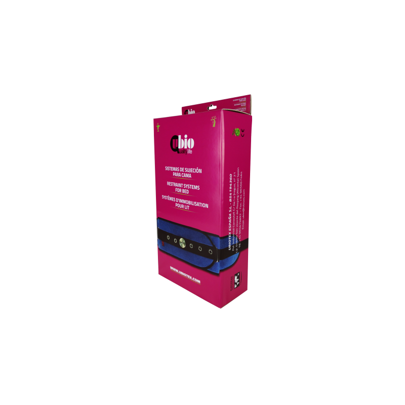 Cintura letto addominale con chiusura con clip di ferro. Permette la lateralizzazione del paziente e il fissaggio a faccia in su.