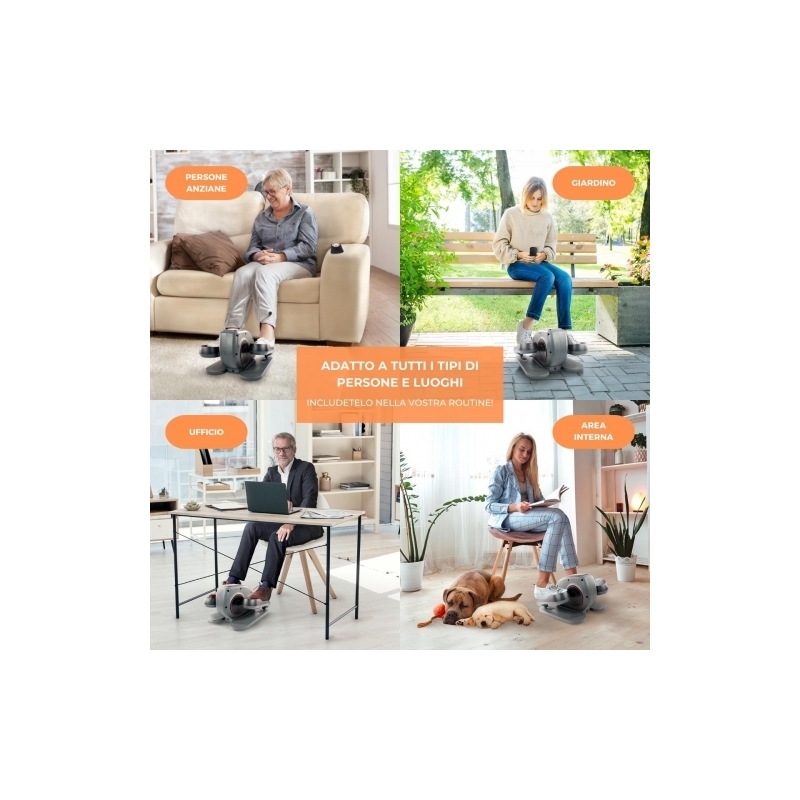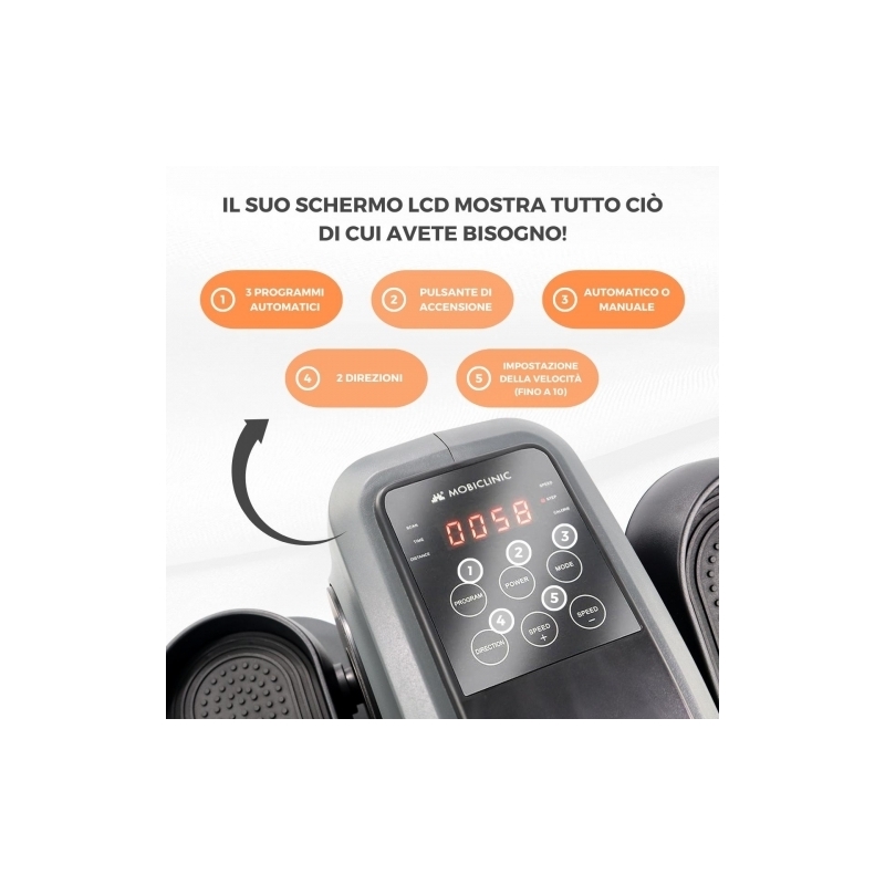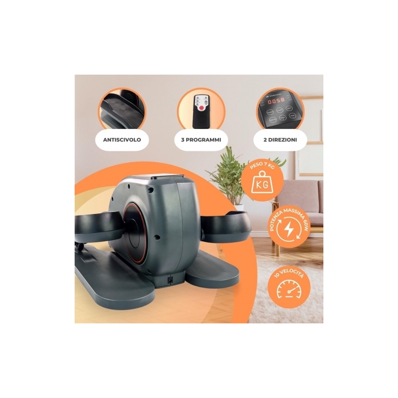 - La mini bicicletta ellittica Vane o pedaliera: è dotata di uno schermo LCD che visualizza la velocità, il tempo, la distanza percorsa, le calorie perse e le pulsazioni. Dispone inoltre di pedali antiscivolo per rendere più efficiente l'allenamento.