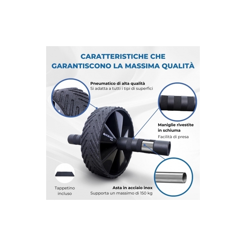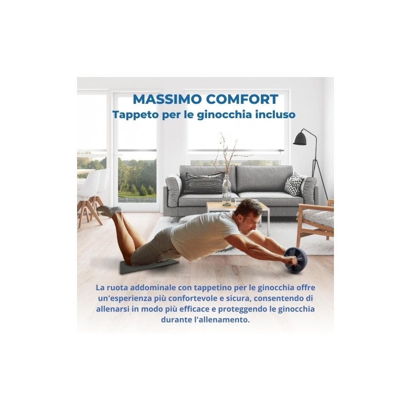 Questo rullo addominale include un tappetino per sostenere le ginocchia e rendere il tuo esercizio più comodo e più facile da eseguire evitando di scivolare.