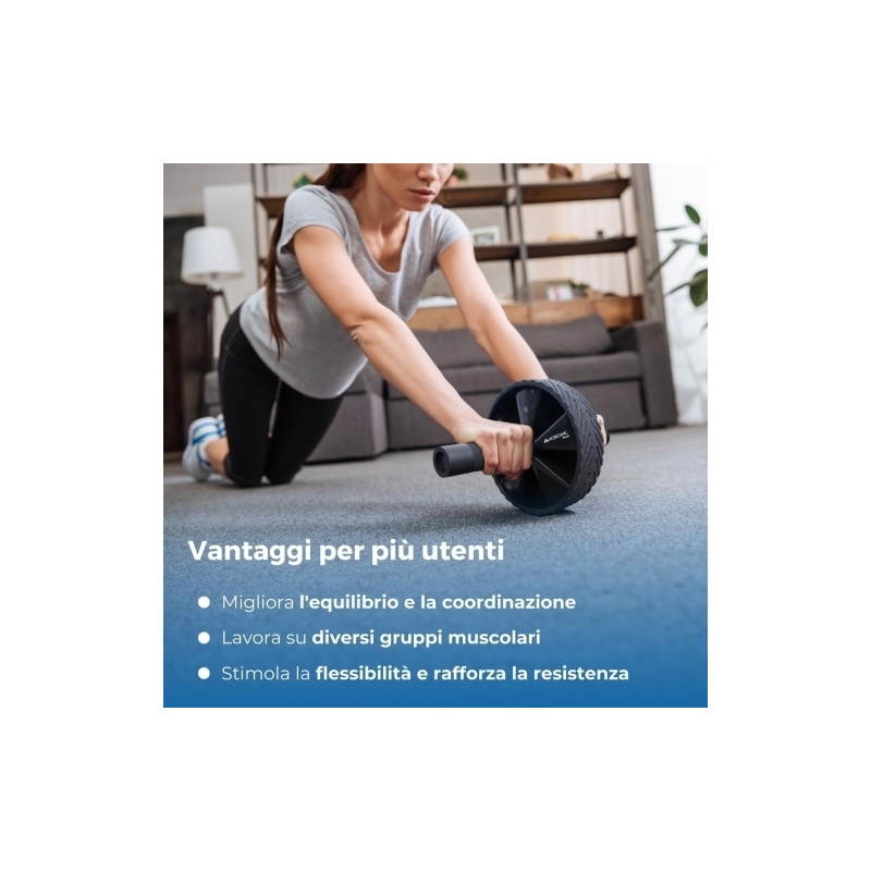 - Gli allenamenti con un rullo addominale contribuiscono a un allenamento total body. Con questo accessorio sportivo puoi allenare intensamente gli addominali sia in superficie che in profondità, così come allenare i glutei e stabilizzare la colonna vertebrale. Inoltre, quando ti alleni con il rullo addominale, lavori anche la zona delle spalle e della schiena, aumentando la flessibilità e la forza di entrambe le zone.