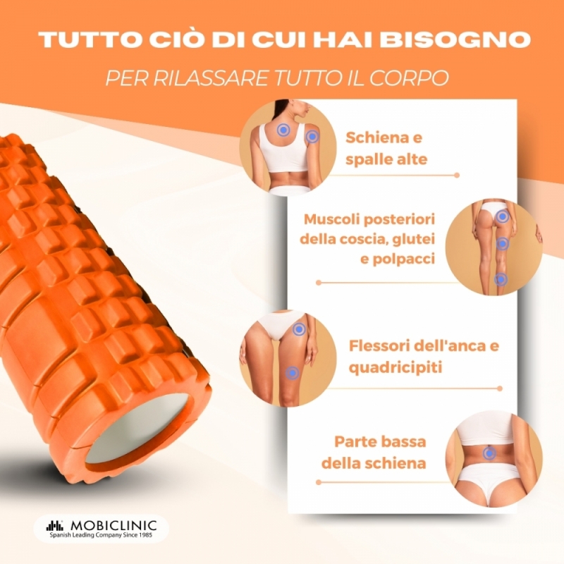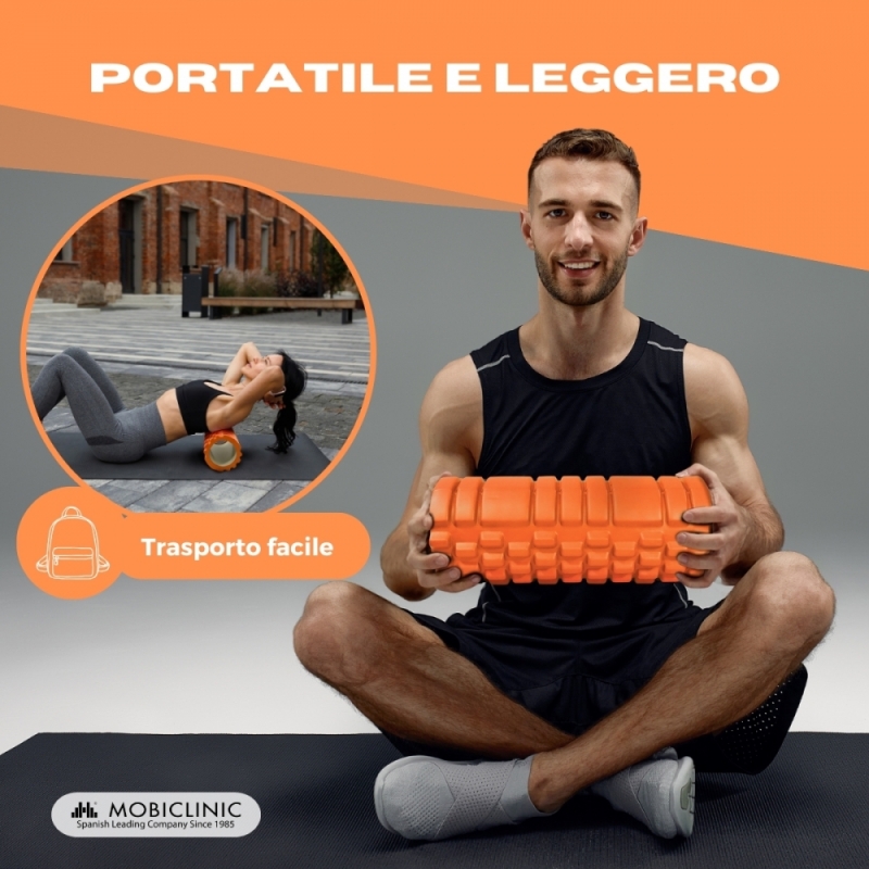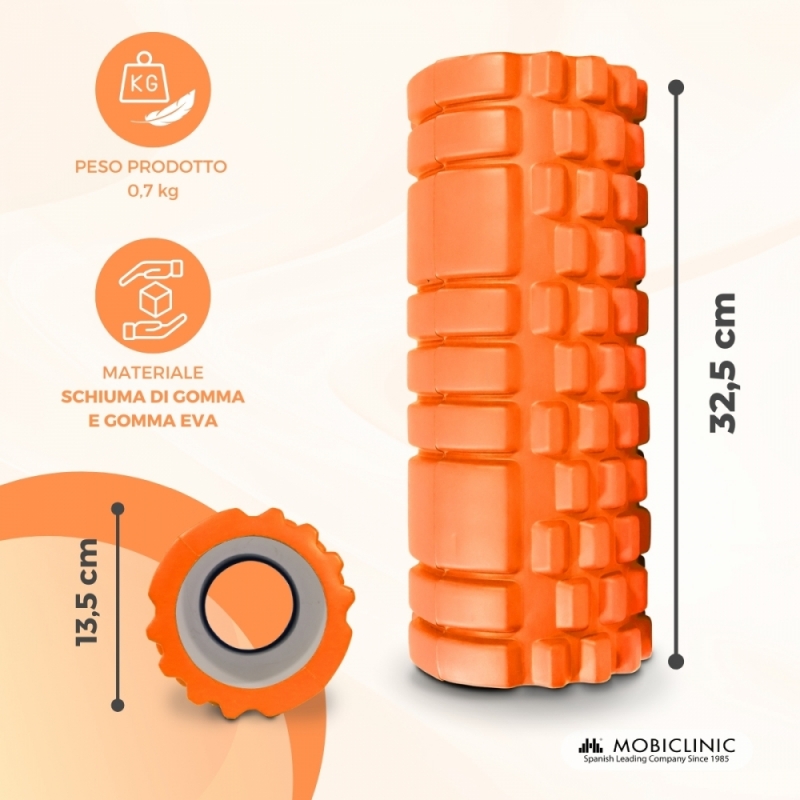 Rullo massaggiante | Gommapiuma | 14 x 33 cm | Versatile | Leggero | Previene gli infortuni | Arancione | FitRoller | Mobiclinic