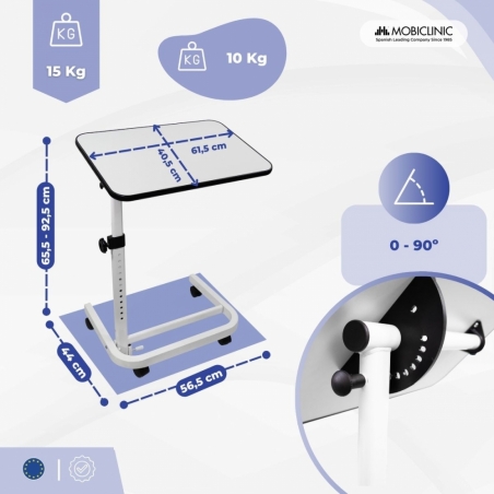 MOBILITÀ E STABILITÀ: È dotato di quattro ruote girevoli multidirezionali, che consentono di spostare il tavolo senza sforzo. Due delle ruote sono dotate di freni che consentono di bloccarlo in modo sicuro ed evitano scivolamenti accidentali. La sua struttura in acciaio offre grande stabilità e supporta fino a 15 kg di carico sul piano del tavolo.