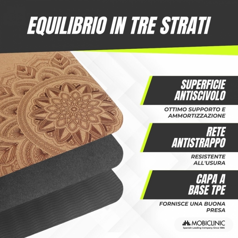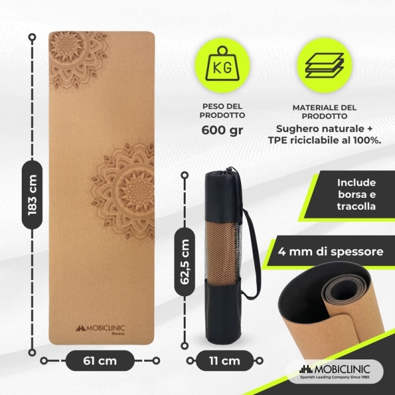 - Materiali: sughero naturale + TPE riciclabile al 100%.