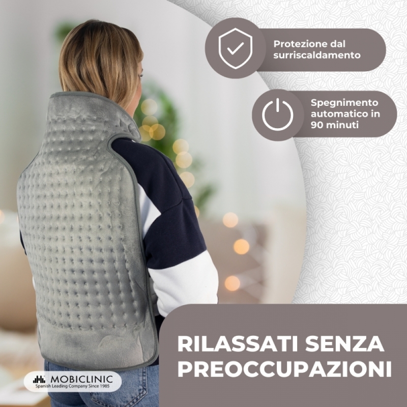 Vi offriamo un cuscinetto elettrico dorsale e cervicale intelligente, termico e ortopedico per fisioterapia di 62x43 cm. che non solo vi fornirà calore ed ergonomia, ma vi aiuterà anche ad alleviare i dolori muscolari, lombalgici, cervicali, dorsali, traumatici e di artrite reumatoide o reumatica. In molti casi questi dolori sono dovuti a stress, ansia o altri problemi.