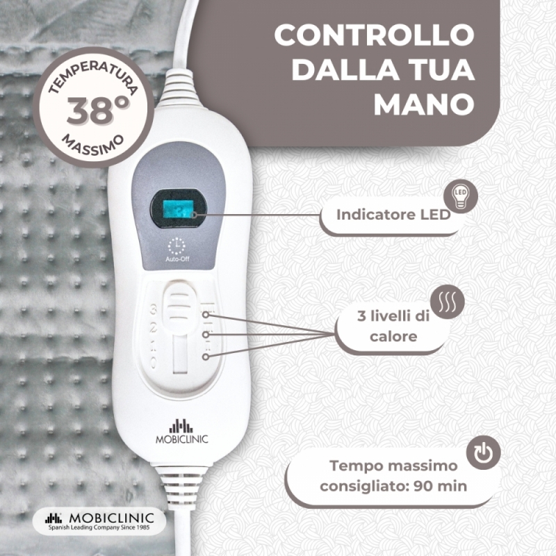 SPESA MINIMA : La potenza di questo pad è di 100 W, che è simile o inferiore al consumo di una lampadina elettrica o la metà di quello che consuma un televisore. Quest'inverno riduci i consumi della bolletta elettrica grazie a questo pad elettrico.