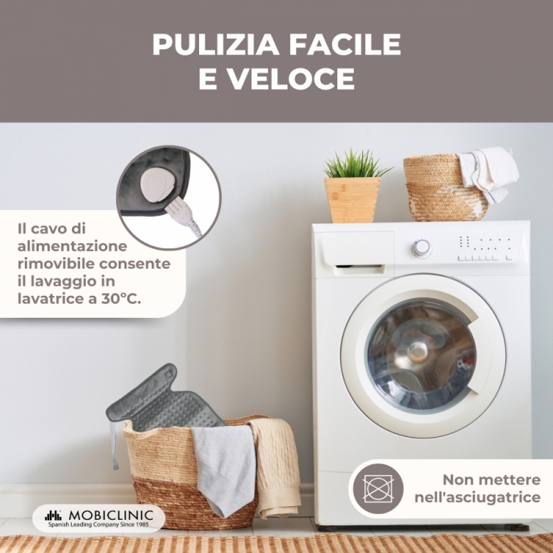 IIl cuscino riscaldante viene collegato alla rete elettrica con la manopola in posizione off; la potenza desiderata viene regolata dalla manopola incorporata e dopo poco tempo il cuscino inizia ad emettere calore. Il calore è fornito da termoresistenze interne dotate di un dispositivo di sicurezza che regola automaticamente la temperatura accendendo e spegnendo la corrente a intervalli regolari modulati dal controllo, quindi non dovrete preoccuparvi affatto di addormentarvi mentre lo usate.