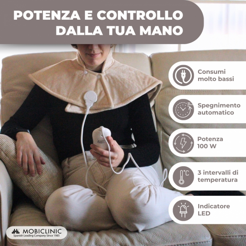 SPESA MINIMA : La potenza di questo pad è di 100 W, che è simile o inferiore al consumo di una lampadina elettrica o alla metà di quello che consuma un televisore. Quest'inverno, allevia il consumo della bolletta elettrica grazie a questo termoforo.