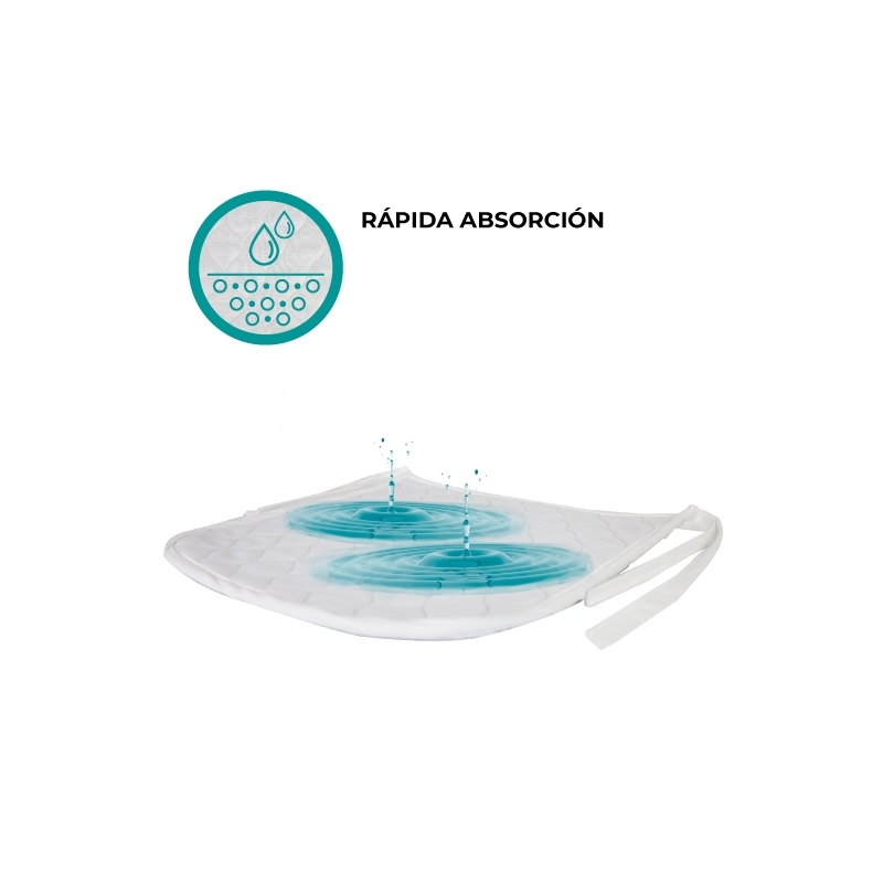 Questo cuscino per sedia a rotelle può essere utilizzato in caso di pipì a letto e in situazioni di eccessiva sudorazione, in quanto impedisce l'eccesso di umidità sulla pelle del paziente. È un materiale traspirante, lavabile, impermeabile e facile da montare e regolare sulla sedia. Grazie alla sua composizione a 4 strati, si ottiene un corretto assorbimento di liquidi e fluidi, mantenendo la pelle del paziente pulita e asciutta.