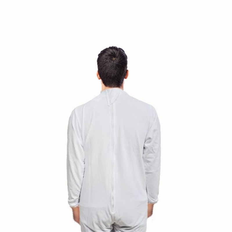 Il pigiama intero corto (manica e gamba corta) è indicato per pazienti che soffrono di incontinenza e/o demenza. È dotato di una cerniera nella parte interna delle gambe (da caviglia a caviglia), cucita in modo tale che il paziente non possa aprirla e toccare il pannolone. Tuttavia, gli assistenti sanitari possono cambiare facilmente il pannolone senza dover togliere il pigiamone intero. Il pigiama sanitario è perfetto anche per proteggere la pelle dei pazienti dal rischio di autolesionarsi.